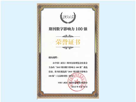 《越玩越野》杂志入选“2015期刊数字影响力100强;